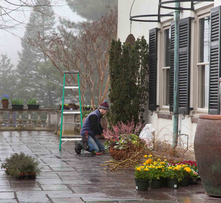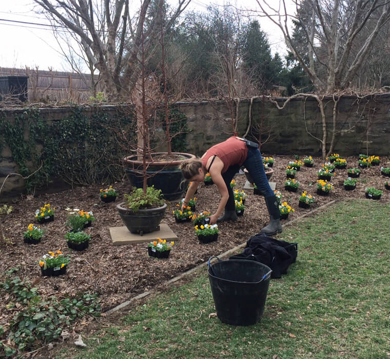 ERIN: Plant up containers and hanging baskets with cold-tolerant plants such as ranunculus, primroses, bronze fennel, and lettuces. Your spring containers will fill in through the spring months and can be transitioned over to summer plants in early May. Chanticleer has two distinct changeovers in the gardens that surround the Chanticleer House; one is planted in March when there is still the threat of frost. Plant selection is important for making the spring plantings last until the second changeover in early May.