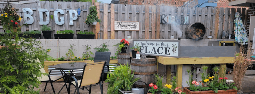 Barking Dog Garden Patio is a collaboration between Chef Dan McKenna and Bill Strine, Jr. (COO of Media Real Estate), which started in the spring of 2021. McKenna and Strine, who’ve been friends for about seven years, originally teamed up in 2019 with the intention of starting an artisan beef jerky shop in a former auto detailing shop in the rear of the building. However, Covid-19 caused them to pivot, and McKenna started selling scratch-made soups and ready-to-heat dinners to Media locals, with a handful of picnic tables set up behind the office.