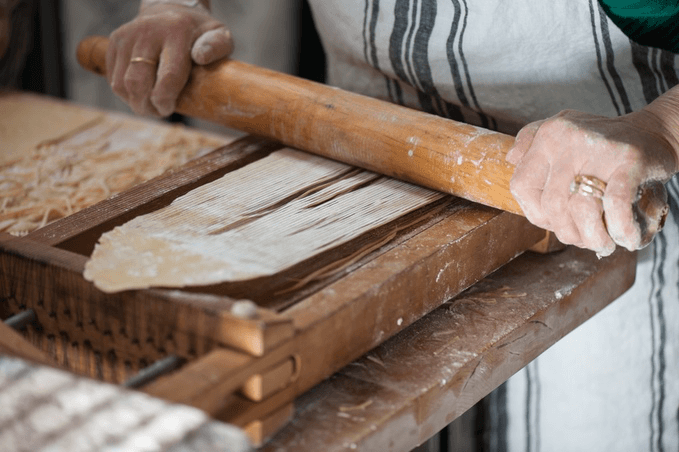 Well, it depends on which grandkids are coming for dinner! It’s usually gnocchi, ravioli, chicken cutlets, roasted red peppers, a hearty stew with fresh bread, and anything with my crepes.