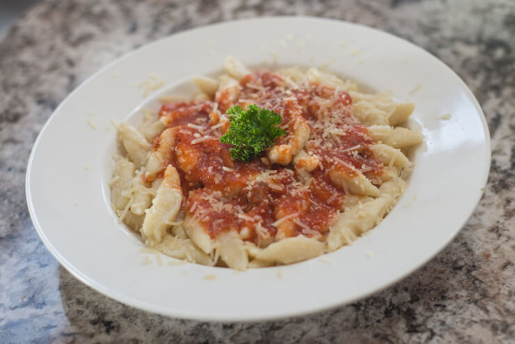 Olive oil, basil, salt, garlic, cheese, eggs, flour, breadcrumbs and tomatoes. That’s all you need to make an amazing pasta dish!