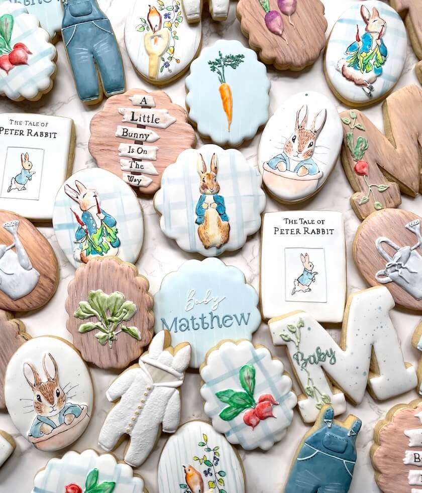 I ultimately decided on decorated cookies because I felt like they were versatile for any occasion. Creating art that is edible also tends to add an advantage, because it won’t be wasted or end up in a landfill. Decorated cookies have the duality of being used as decor and favors that transport easily, which is always a plus.