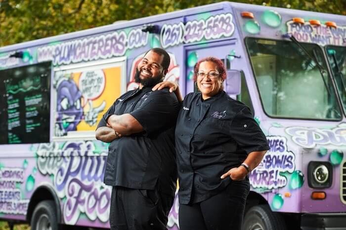 Chef Floyd and Chef Angie Kahlil own Plum Caterers, which includes two amazing food truck brands: The Plum Pit and The Sugar Plum. Fun fact: Chef Floyd builds out the food trucks himself! Hit The Plum Pit for all the savory: sandwiches, tacos, rice bowls, cheesesteaks, burgers, chicken wings and tenders, BBQ chicken, ribs, brisket and pulled pork plus Caribbean and soul food, Tex Mex and seafood! Seasonally, The Sugar Plum serves up ice cream, milkshakes and smoothies — including vegan options!