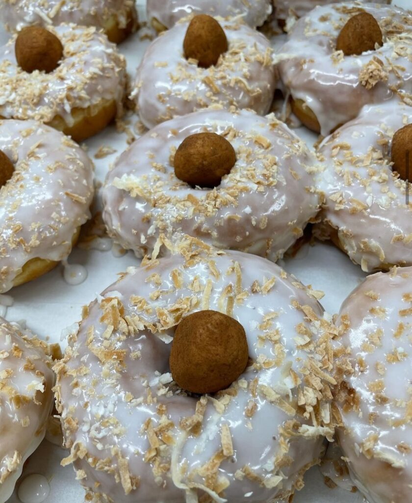 The Irish Potato flavor combo is such a fan favorite, that you’ll often find it remixed into other goodies, like cupcakes, ice cream, and at The Keystone Bakery — donuts! Each of these decadent confections is a traditional ring donut with coconut icing and toasted coconut flakes, topped with an Irish Potato candy. They’re only available for a limited time.