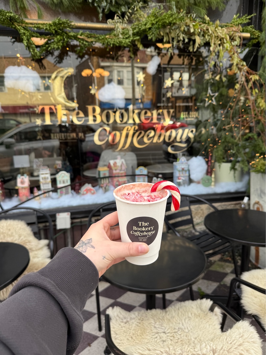 The hottest new coffee spot in Havertown is The Bookery Coffeehouse, a cafe/bookshop next door to Plant Roots, a gift and plant shop that stocks the cutest things. The vibes and decor in The Bookery are immaculate; snuggle up in the banquet along the front window with a Dirty Hot Chocolate with Marshmallow Whipped Cream from the season specials menu. This rich hot chocolate is spiked with espresso and topped with sweet marshmallow whip for a nod to fireside s’mores.