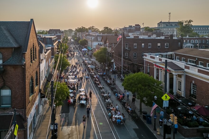 The closed-down section of State Street also means that folks can leisurely stroll, chat with neighbors and soak up the convivial atmosphere. Guests can engage in a bunch of different ways: simply stop by to catch the weekly live music performances, bring the kids to enjoy the vibes, pop into one of Media’s bakeries or ice cream shops to enjoy a sweet treat, browse the boutiques, or make a restaurant reservation and go in for the full experience.