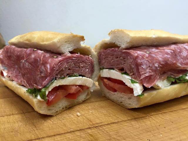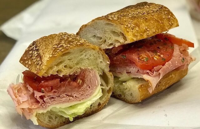 We’re going to go with a slight twist here because this mouthful includes more cheese, and well, who doesn’t want more cheese? Try the Italian Hoagie Caprese (order by number; this is #30): prosciutto, sweet sopressata, Genoa salami, fresh mozzarella, tomatoes, basil (no lettuce again!), olive oil and seasonings. It’s what you’d expect from a traditional Italian deli and market that Philly’s DeSantis family (who ran popular Philly and Norristown Italian restaurants throughout the 1980s and 1990s) acquired from the Pagano family in 2001. Open Tuesday through Friday from 9:30 a.m. to 6 p.m., Saturday from 8:30 a.m. to 5 p.m. and Sunday from 10 a.m. to 2 p.m. Closed Monday.