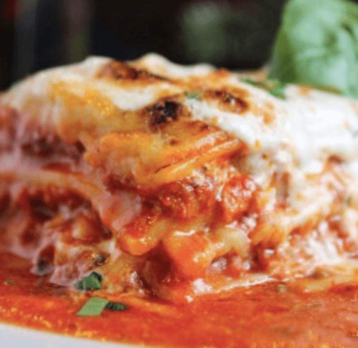 Another in the category of “your Nonna would be impressed!”: Dig lasagna al forno, layers and layers of tender pasta and cheese made hearty with fresh tomato sauce and ground meat bolognese plus bechamel sauce. We also must give a shoutout to the specials menu, which is packed with signature Italian comfort foods — especially the Sunday Dinner special!