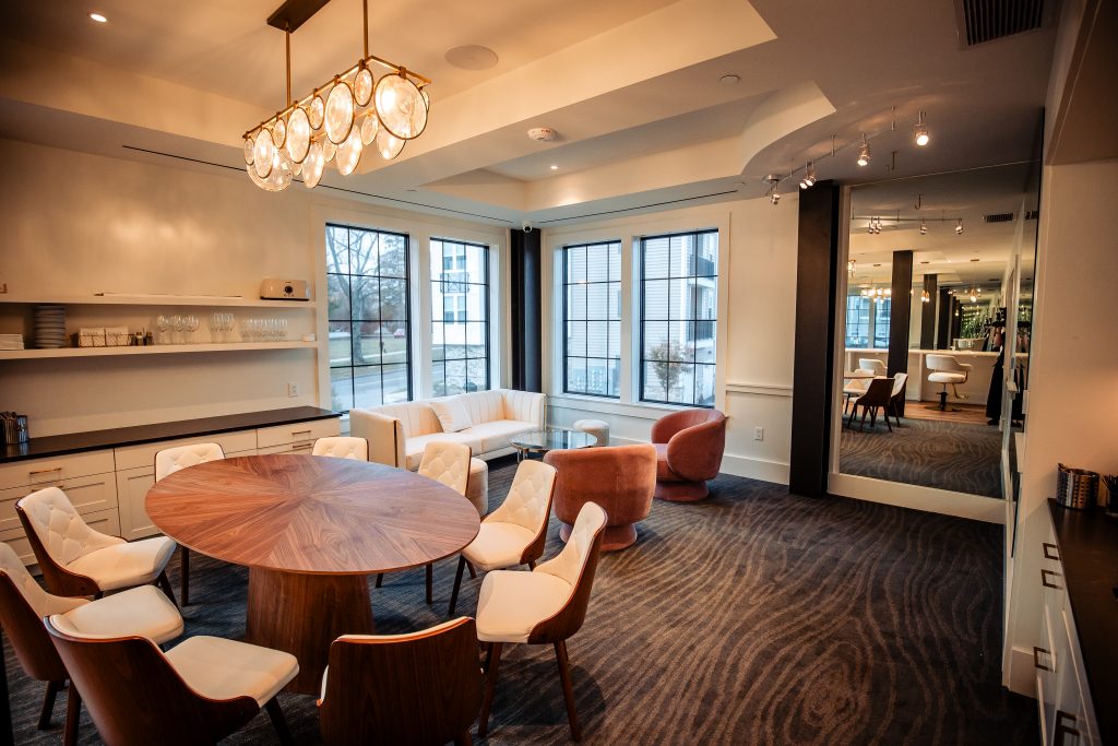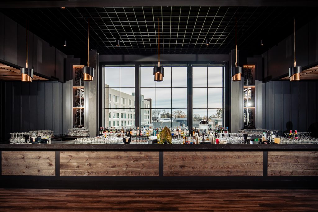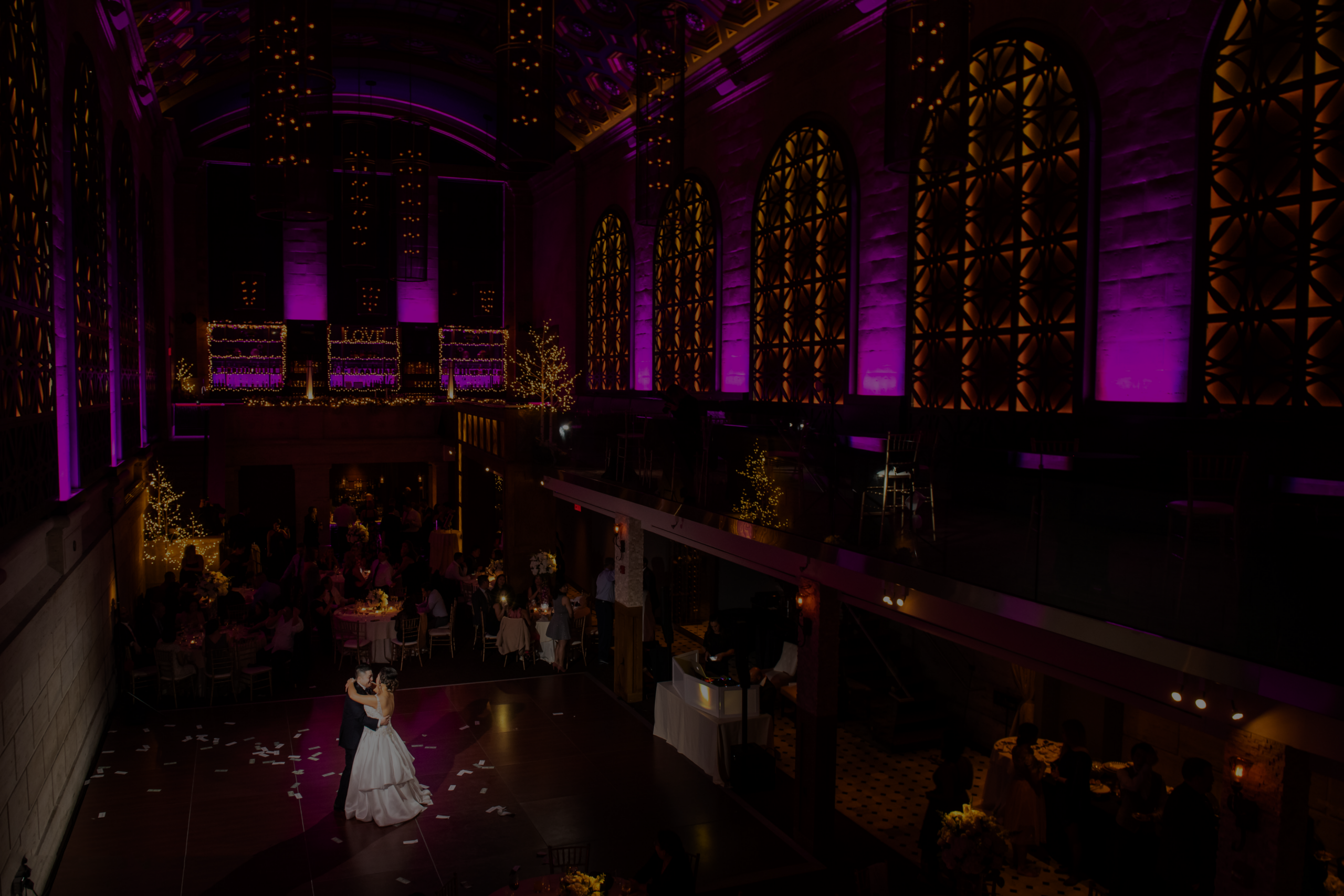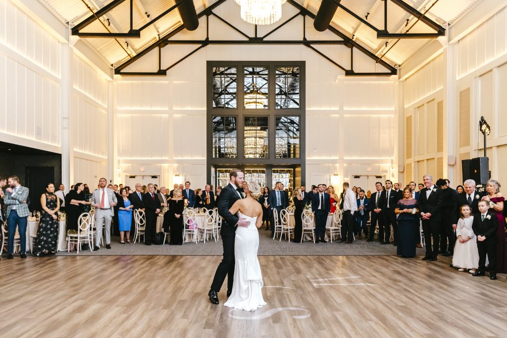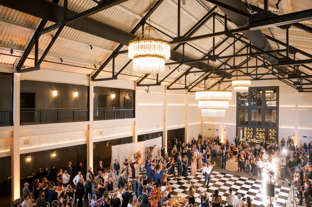 The rustic chic building reflects an upscale barn with striking lighting and modern fixtures, providing a cozy setting in a spacious venue. It features a covered ceremony space outside. Upstairs, the second floor includes indoor and outdoor covered spaces ideal for cocktail hour overlooking the ballroom. Then, enjoy dinner and dancing inside its breathtaking first floor ballroom.
